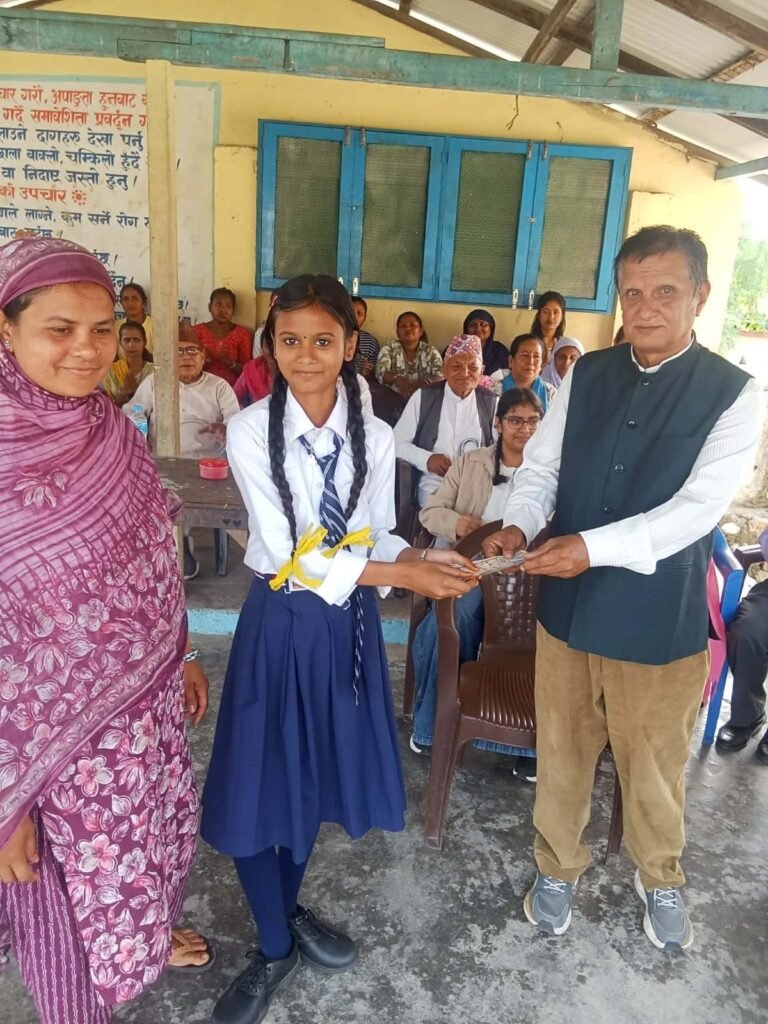 वि.सं. २०६९ सालमा विद्यालयका पूर्व प्रधानाध्यापक वासुदेव सापकोटाको पहलमा स्थापना गरिएको ‘गुहेश्वरी अक्षय कोष’ मार्फत छात्रवृत्ति वितरण गरिएको हो। कोषले कक्षा १ देखि ८ सम्मका कक्षागत प्रथम र द्वितीय हुने विद्यार्थीलाई क्रमशः जनही १५०० र १२०० रुपैयाँ प्रदान गरेको छ भने गरिब तथा जेहेनदार विद्यार्थीलाई जनही १००० रुपैयाँका दरले सहयोग गरिएको जनाएको छ।